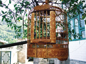 選材和傳統(tǒng)工藝是布依族鳥籠制作的兩大關(guān)鍵環(huán)節(jié)。最好的用材是優(yōu)質(zhì)畫眉竹、毛竹和青竹。竹材的采伐時(shí)間,有嚴(yán)格的要求,一般是在每年的秋收以后到第二年的正月間最為合適。其它時(shí)間采伐的竹材水性重,易蛀蟲。至于竹材,則以生長(zhǎng)5到7年的竹子最為理想。這種年齡的竹料柔韌、堅(jiān)硬、鮮亮。布依族鳥籠全由精雕細(xì)鏤的各式竹節(jié)(條)組合而成,構(gòu)成部件做工精細(xì)。雕飾分花、素兩款,樣式有方、圓兩類。雕花鳥籠,從取材到最后組裝完成,需10天左右。鳥籠雕刻圖飾有“雙鳳朝陽(yáng)”、“二龍戲珠”和“蝴蝶結(jié)”等等。